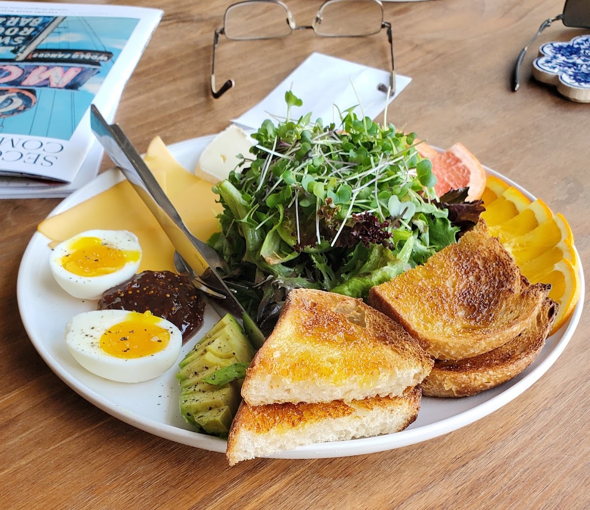 Such an amazing find! Their chai blend was delicious, as was the food. I would include photos of the grilled cheese (comforting yet also sophisticated) but all I have is an empty plate. At the suggestion of staff, I subbed salad for the chips. The salad was amazing! Such a lovey mix of greens and micro-greens with a glorious balsamic dressing. My husband had the medium charcuterie board. And by medium they mean HUGE. An eclectic variety of cheeses, fruit, and salami paired with nuts and a perfectly spicy jam. It occurred to me that I needed to share this amazing find before the charcuterie board was bare, so there is photographic evidence of the last 1/3 of the board. And, bonus - fun and eclectic surroundings with both indoor and outdoor options with excellent service. TLDR: 10/10 recommend